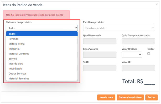 | Ordem de compra simplificada | Ativa um layout reduzido para geração de ordens de compra, com menos campos. |