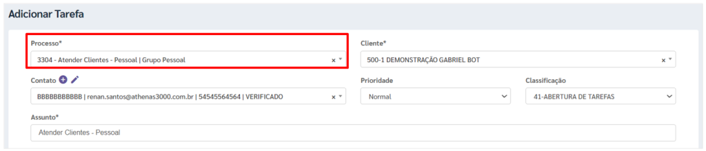 Caso a empresa possua processo vinculado a tarefa preencha os campos: