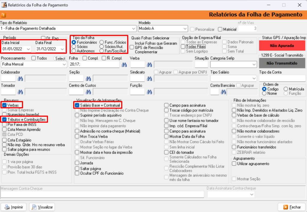 - Marque as flags Verba, Tributos e Contribuições, Salário Base=Contratual;