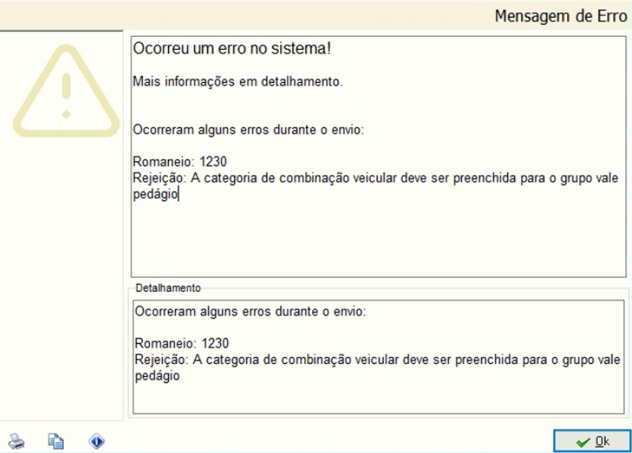 ❓ O que significa o erro “Rejeição: A categoria de combinação veicular deve ser preenchida para o grupo vale pedágio”?