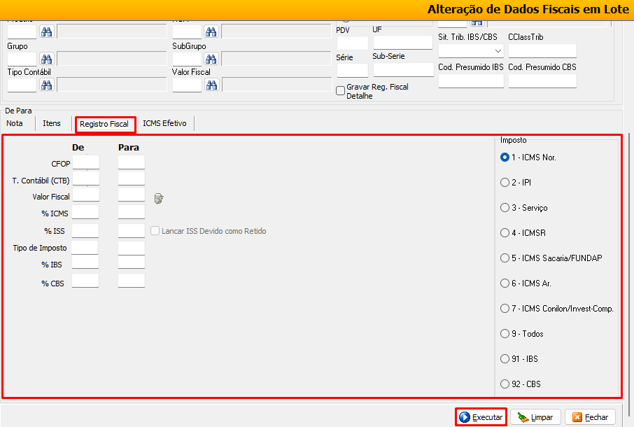 Se o objetivo for somente recalcular o Registro Fiscal, marque a opção Apenas Recalcular Registro Fiscal.