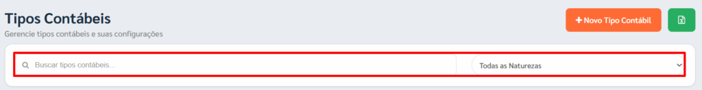 – Pesquise diretamente pelo Nome do Tipo Contábil.