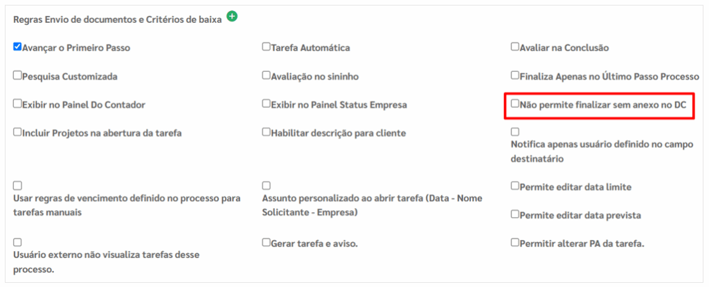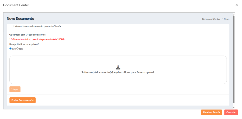 → Esta configuração exige que o usuário envie ou anexe um documento no momento de finalizar a tarefa.