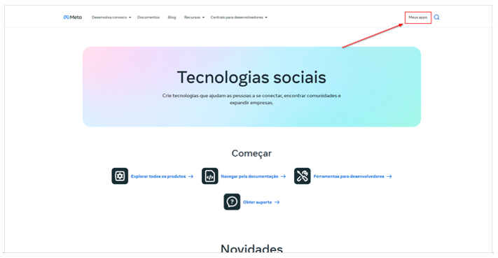 Acesse novamente o portal de desenvolvedores da Meta: