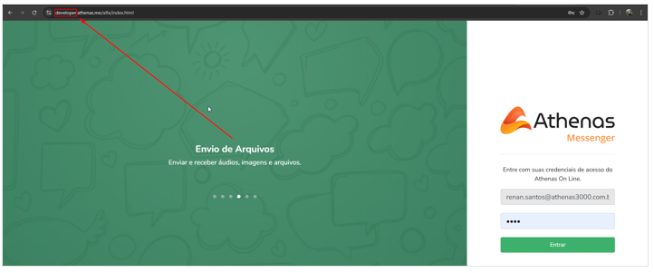 Acesse o sistema Athenas Messenger.