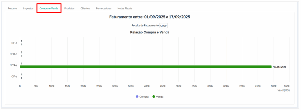 – Apresenta a relação entre notas fiscais de compra e de venda dentro do período selecionado.