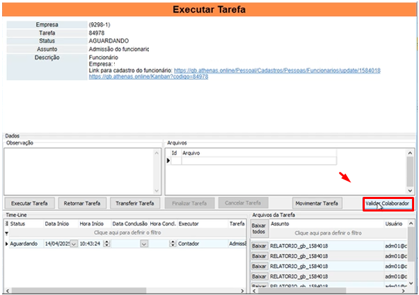 - A equipe do Departamento Pessoal deverá acessá-la para validar o colaborador.