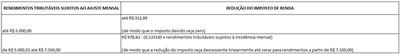 Aplicada exclusivamente aos rendimentos entre R$ 5.000,01 e R$ 7.350,00.