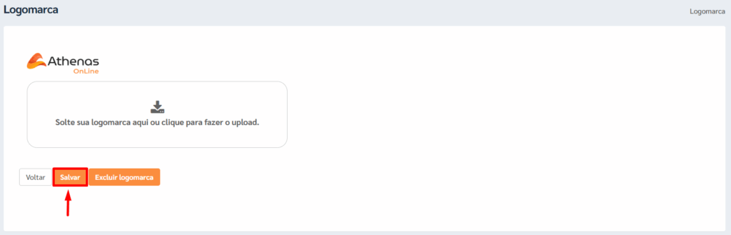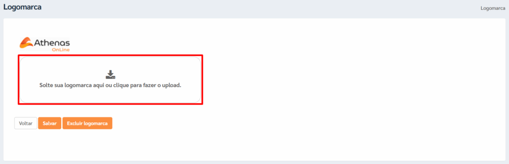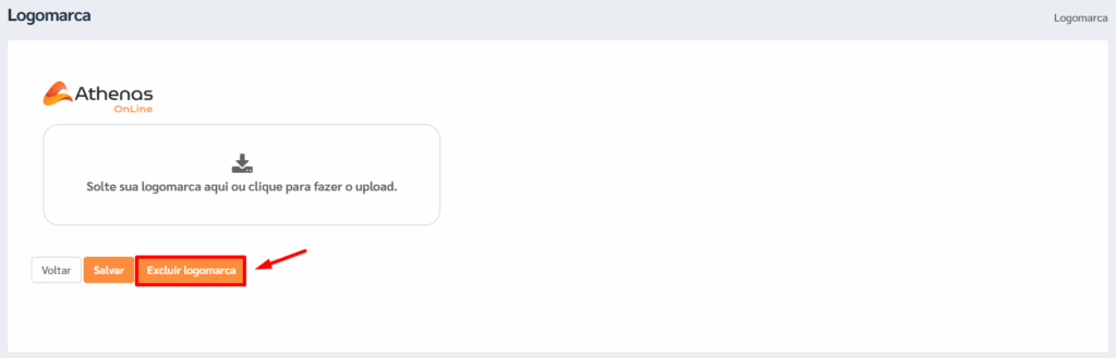 Caso seja necessário alterar a logomarca futuramente, clique no botão [Excluir Logomarca] e repita o procedimento de upload descrito acima.