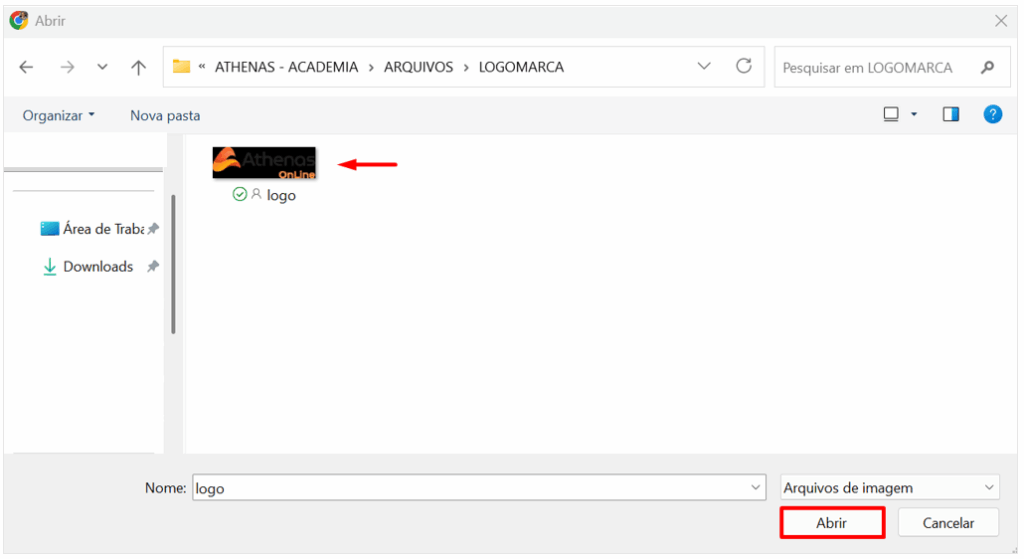 Em seguida, localize no seu computador o arquivo da logomarca da empresa.