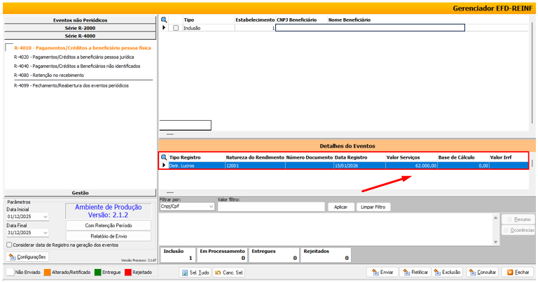 2. Localize o evento R-4010 gerado para a distribuição aprovada.