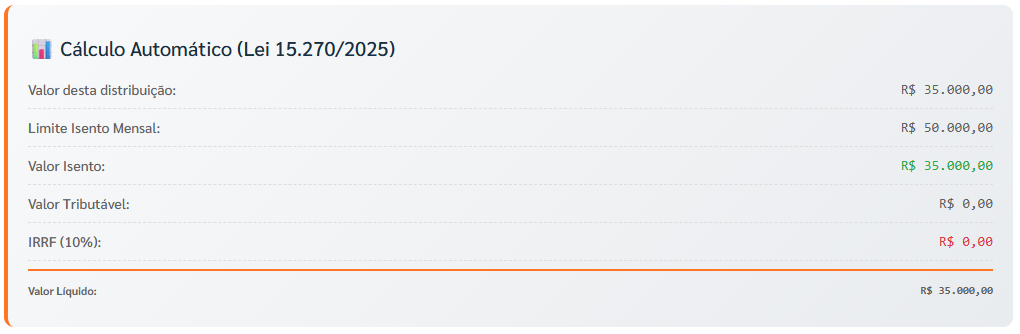 📊 Cálculo Automático (Lei nº 15.270/2025)
