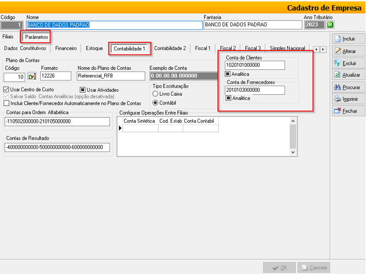 Acesse o menu Cadastros > Empresas > Aba Parâmetros > Subaba Contabilidade 1.