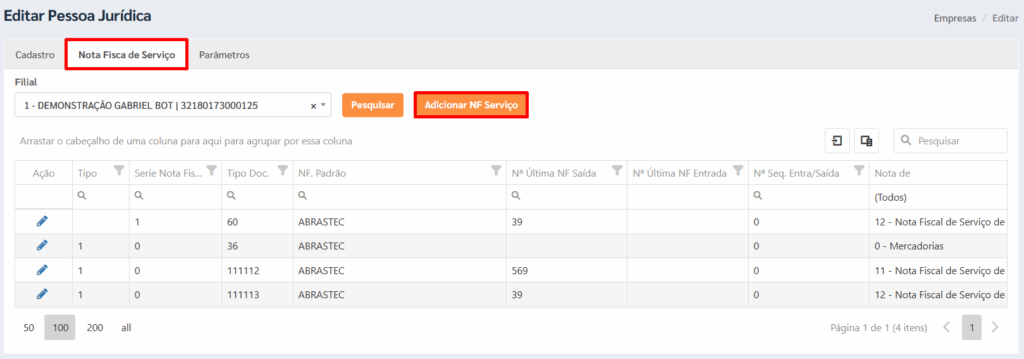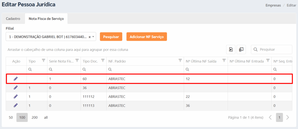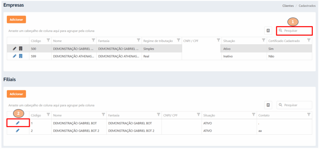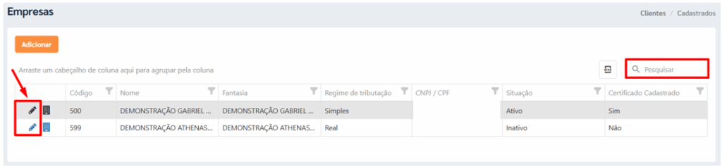 Localize a empresa desejada no campo de pesquisa e clique no ícone [Editar].