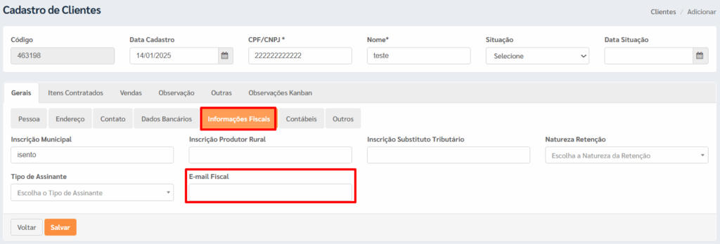 📌 Observação: O e-mail fiscal é necessário para envio automático da NF ao cliente.