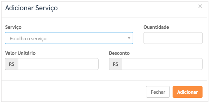 Serviço: selecione o item previamente cadastrado que será faturado.