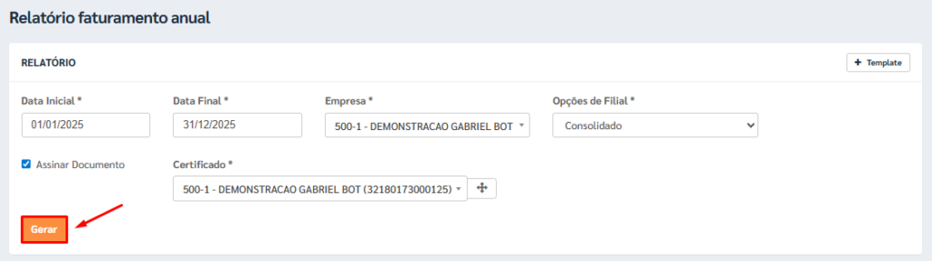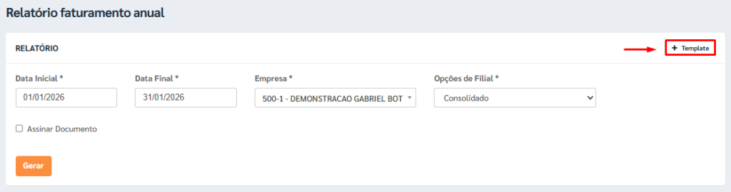 Na tela do Relatório de Faturamento Anual, localize e marque a opção