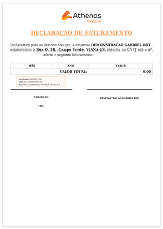Este manual tem como finalidade orientar o usuário na emissão da declaração de faturamento anual de forma padronizada e automatizada pelo sistema, utilizando os recursos de template e preenchimento automático com dados da empresa, representante e contador.