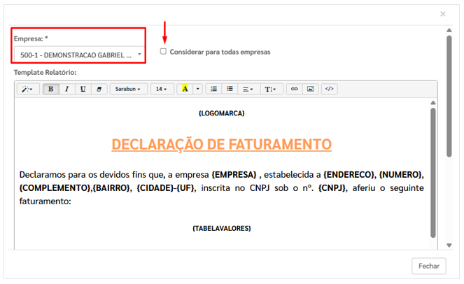 Selecione a empresa para a qual deseja editar o template.