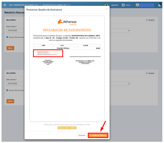 Após definir a posição correta, clique em [Confirmar Posição] para fixar a assinatura no documento.