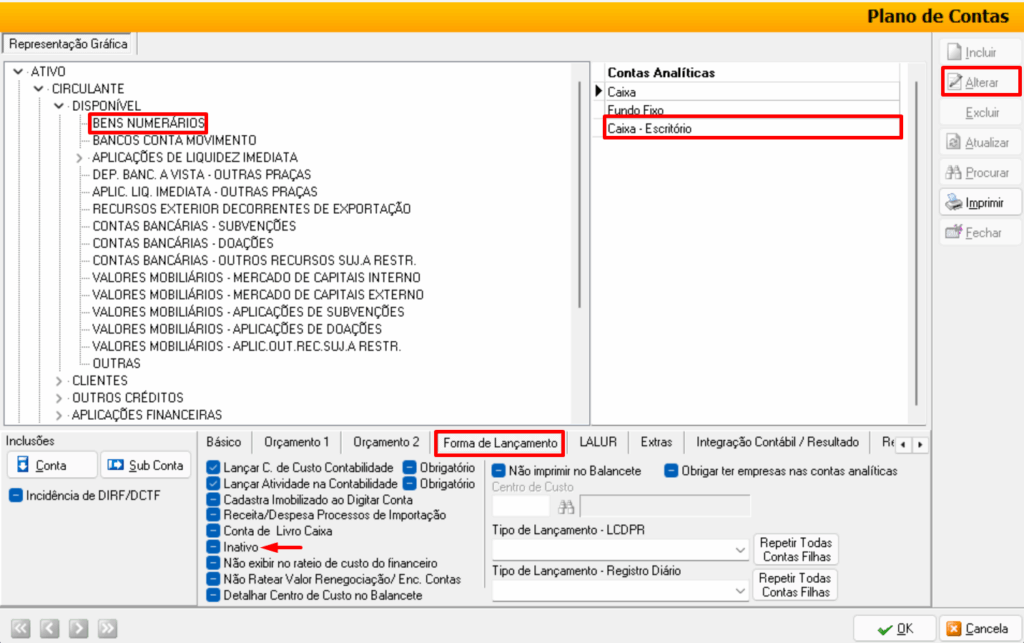 2) INATIVAR CONTA NO PLANO DE CONTAS