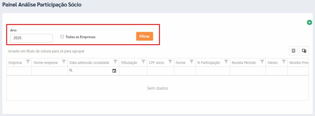 Clique em [Filtrar] para gerar a listagem com as informações consolidadas de participação societária.