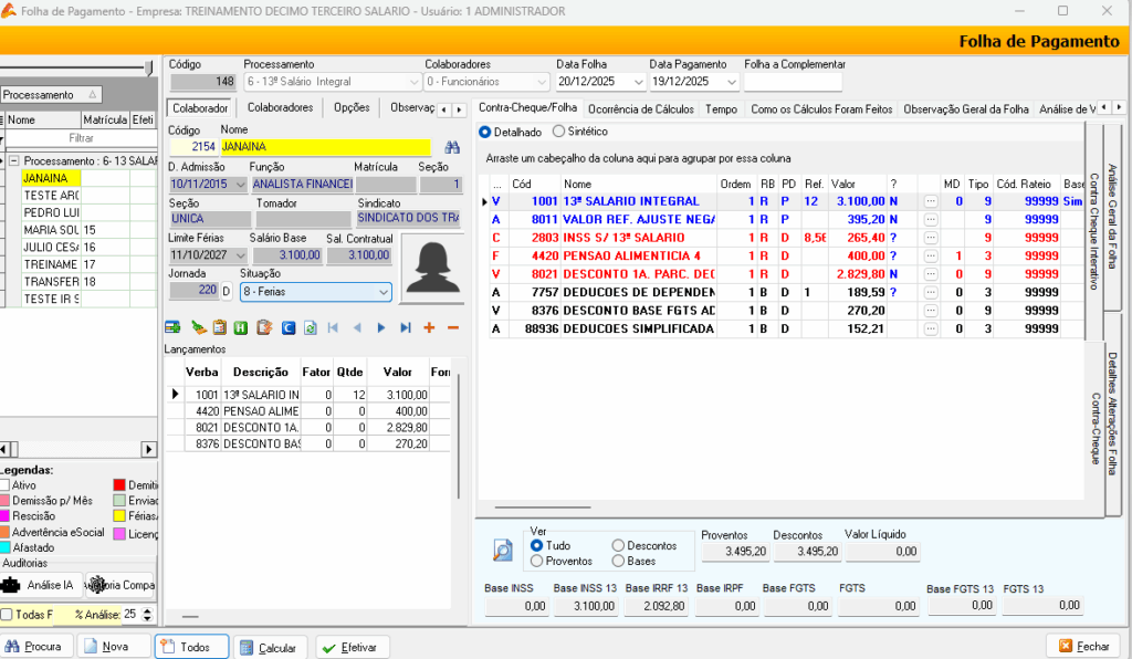 – O sistema reunirá automaticamente todas as informações de folhas anteriores (adiantamentos ou parcelas processadas antes de dezembro).